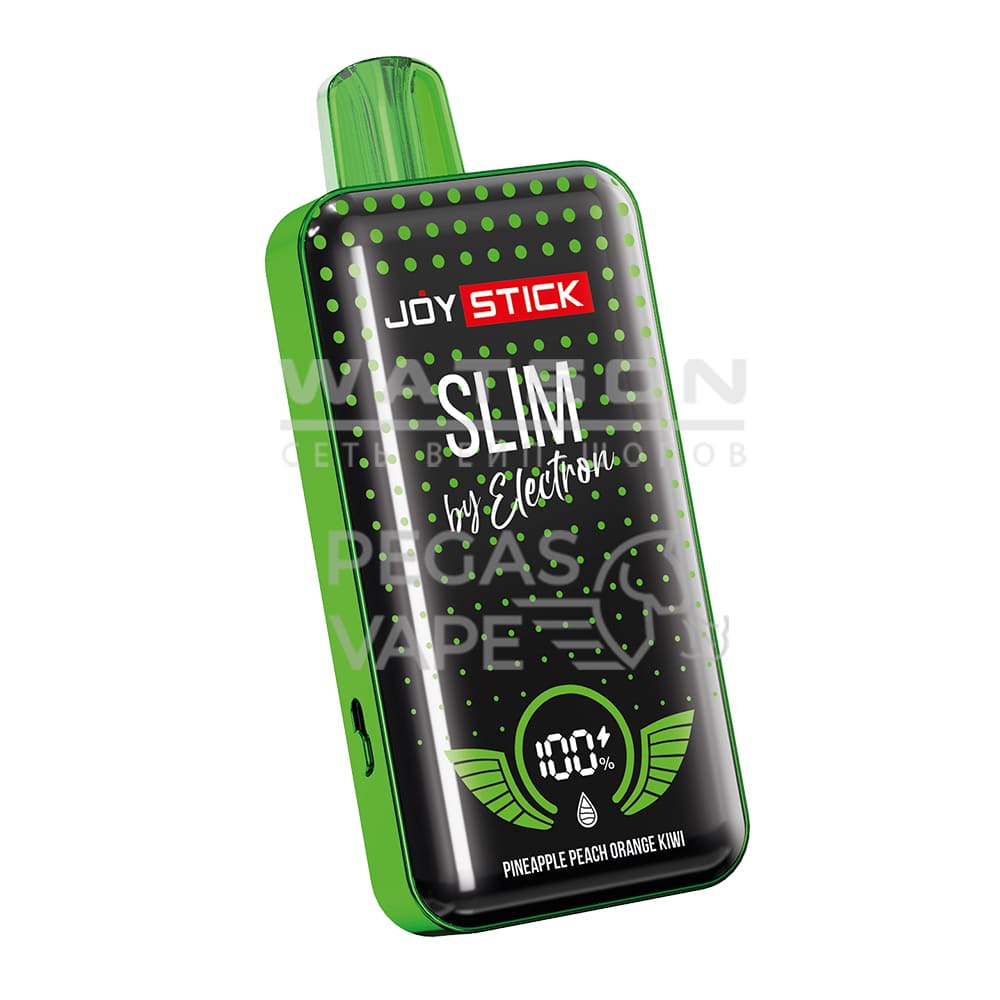 Одноразовые электронные сигареты JOYSTICK SLIM STRONG 20000 со вкусом Ананас персик- апельсин киви – новинка от бренда JOYSTICK. Аккумулятор емкостью на 600 mAh с возможностью подзарядки через разъем USB Type-C и бак с 8 мл предзаправленной жидкости (Солевой никотин крепостью 2% (20 мг/мл)) позволяют совершить до 20000 затяжек. Хватит примерно на 40 дней